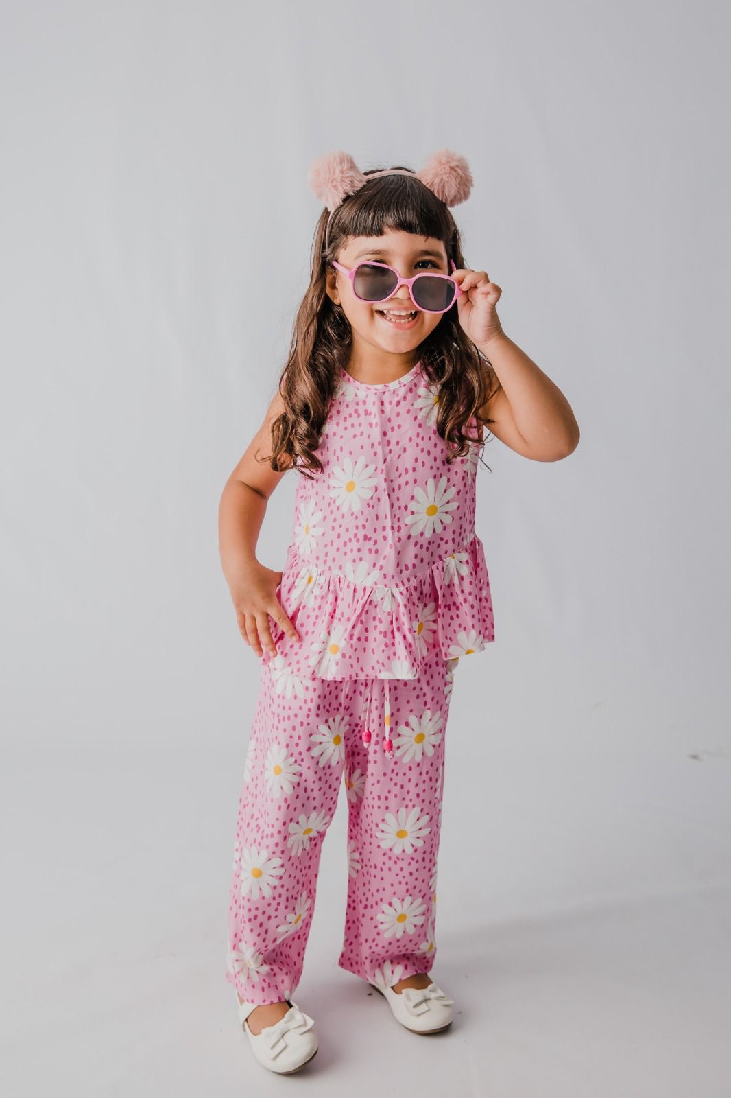 Florescendo com estilo! Nosso conjunto com estampa em margaridas além de ser muito lindo, traz conforto e alegria para nossas princesas. Perfeito para brincar e explorar o mundo com muito charme!